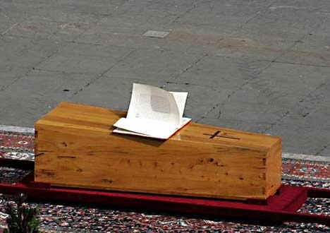 Az április 8-ai gyászszertartásra több millióan érkeztek az örök városba. Talán a történelem legnagyobb temetése volt ez. A Szent Péter téren összegyűlt sokaság ezt skandálta, és ezt hirdették a táblák: „Santo subito!” (vagyis: Legyen azonnal szent!)