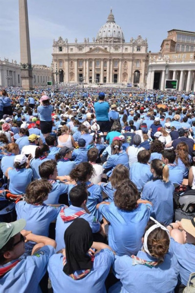 Olaszország szinte minden részéről érkeztek gyalogosan, kerékpárral vagy busszal cserkészek az Olasz Katolikus Cserkészvezetők és Cserkészek Szövetségének (AGESCI – Associazione Guide e Scouts Cattolici Italiani) szervezésében a Szent Péter térre.