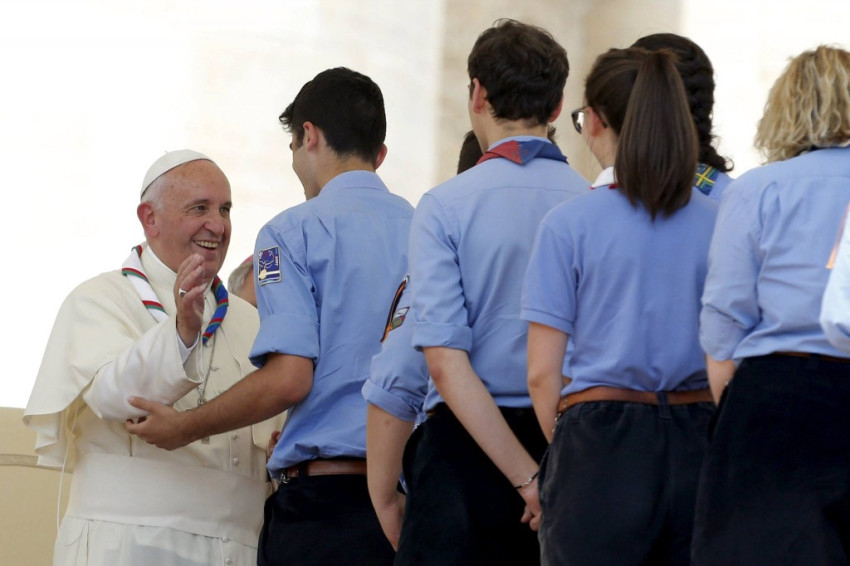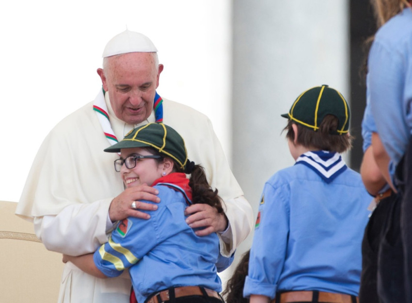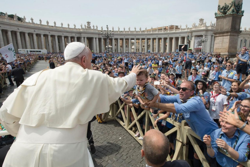 Köszönöm, hogy ilyen nagy számban eljöttetek Olaszország minden részéből, hogy ilyen ünnepi hangulatot keltsetek a Szent Péter téren. Köszöntöm a férfi és női cserkészelnököt, a cserkészekkel megbízott egyházi asszisztenst, a farkaskölyköket és a katicákat (fiú és lány kiscserkészek – A szerk.), a cserkészvezetőket, a vándorokat és a kószákat, a csapatok parancsnokait és a cserkészpapokat. Ne dicsekedjetek ezzel, de mondok nektek valamit: az egyház értékes része vagytok Olaszországban. Talán a legkisebbek nem értik még jól, de a nagyobbak, remélem, igen! Részletesebben: fontos a ti hozzájárulásotok, amellyel a családokat segítitek a kisgyermekek, a gyermekek és a fiatalok nevelésében. A szülők rátok bízzák őket, mert meggyőződtek a cserkészmódszer jóságáról és bölcsességéről, amely a nagy emberi értékeken, a természettel való kapcsolaton, a vallásosságon és az Istenbe vetett hiten alapul; egy olyan módszer, mely felelősségteljes szabadságra nevel. A családok bizalma hitelt érdemlő, amint az egyházé is: kívánom, hogy érezzétek magatokat mindig a nagy keresztény közösség részének.