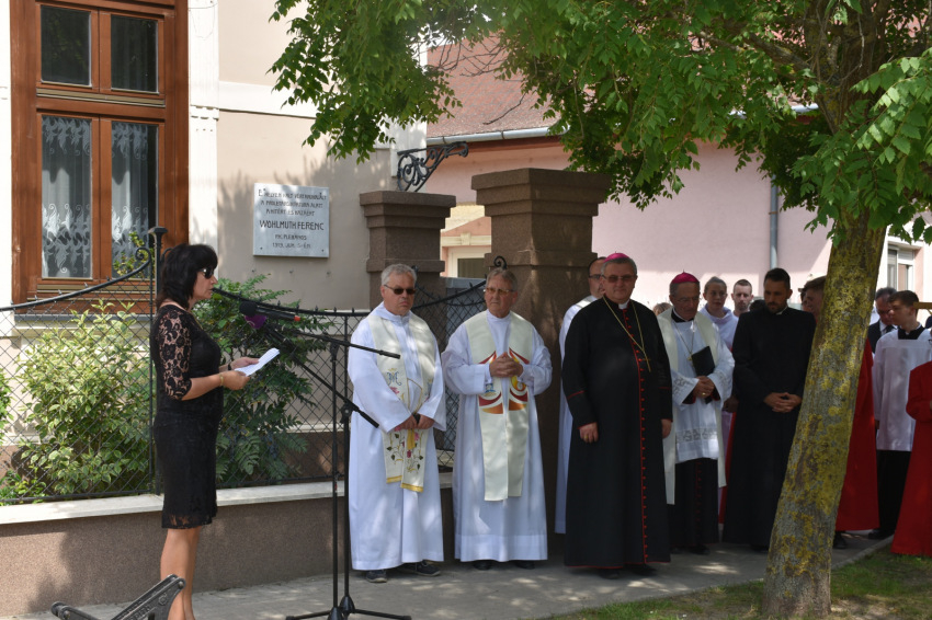 Az emléknap a községháza előtt folytatódott, ahol Wohlmuth Ferenc az utolsó óráit töltötte. Beke Gyöngyi, Császár polgármestere ünnepi beszédében felelevenítette ezeket az órákat, valamint a vértanúságot megelőző éveket, melyek során Wohlmuth Ferenc számtalanszor bizonyította, senkinek sincs nagyobb szeretete annál, mint aki életét adja barátaiért. A plébános ritkán költött magára, emiatt sokan fukarnak tartották, holott vagyonából a falu szegényeit segítette, akik számára jótékonysági alapítványt is létrehozott. Beke Gyöngyi kifejtette,