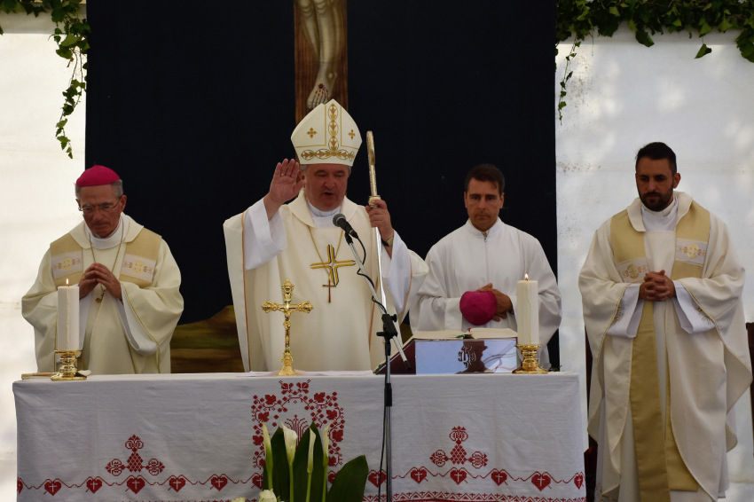 Homíliájában Veres András megemlítette, 2018 óta pünkösdhétfő napján Szűz Máriát, az Egyház Anyját ünnepeljük. Számos képzőművészeti alkotáson láthatjuk, hogy Mária az apostolokkal együtt volt a Szentlélek kiáradásának idején, így ő lett az egész egyháznak is édesanyja. A történelem során gyakran volt szükségünk az Égi Édesanya támogatására, ő lett a vértanúk segítsége is, hiszen az Egyház történetét végigkísérték és kísérik ma is az üldöztetések.