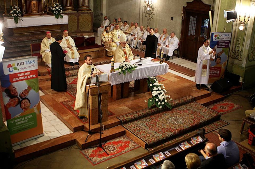 A rendezvény az ünnepi megnyitóval folytatódott a templomban. Veres András püspök köszöntötte a résztvevőket, és hivatalosan megnyitotta a Katolikus Társadalmi Napokat. A Szombathelyi Egyházmegye főpásztora a latin compassio (együtt szenvedés, a másik szenvedésében való részesedés – A szerk.) fogalmának értelmezésével arra buzdított, ne nyugodjuk bele se jó, se rossz sorsunkba, fáradhatatlanul keressük a segítés és önsegítés lehetőségét, legyünk jelen embertársaink örömében és bánatában.