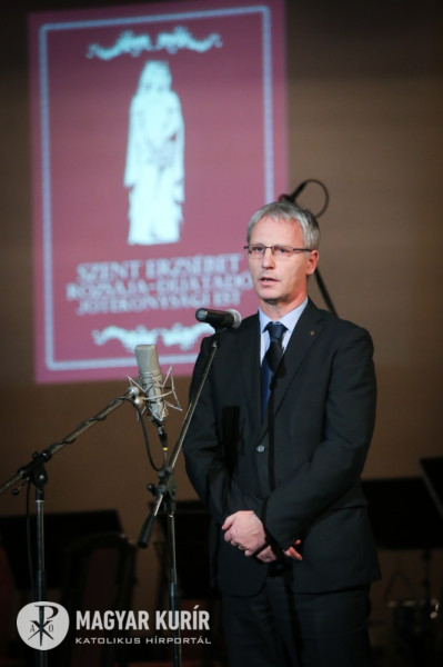 Világunk aggodalmat keltő folyamatai láttán a szeretetszolgálat, Szent Erzsébet példája egyre aktuálisabb – kezdte köszöntőjét Erdő Péter bíboros. Nagy a nyomás világszerte az államokon, hogy vonjanak ki minél több anyagi eszközt a humán szektorból, az oktatásból, az egészségügyből, a szociális területről, hivatkozva a hatékonyság, a versenyképesség, a költségvetési fegyelem támasztotta követelményekre. Ezek valóban fontosak, mondta Erdő Péter, ugyanakkor feltette a kérdést: az állam és a társadalom cél vagy eszköz, az állam az emberért van-e?