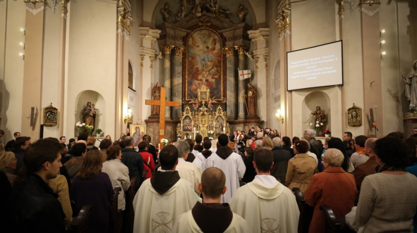 A budai ferences templom és kolostor, mely a Margit körút elődjéről, a Budáról Bécsbe vivő országútról kapta a nevét, már jóval a liturgia kezdete előtt megtelt a kereszt és az ikon fogadására összegyűlt fiatalokkal.