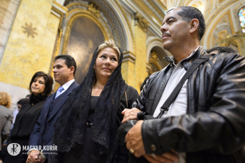 A Costa Rica-i Floribeth Mora, aki súlyos betegségéből II. János Pálnak tulajdonított csoda segítségével épült fel, megérkezik férjével szentmisére a római San Stanislao-templomba április 24-én. Floribeth 2011-es csodás gyógyulása meghatározó volt a kanonizáció során.