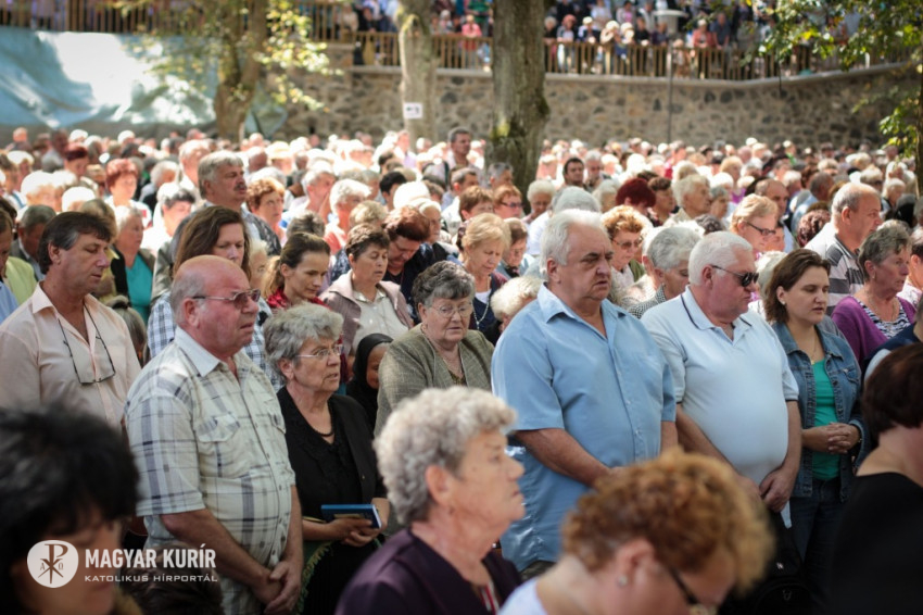 Kálmán Peregrin, a Mátraverebély-Szentkúti Nemzeti Kegyhely igazgatója köszöntötte a szabadtéri oltár előtti teret zsúfolásig megtöltő hívősereget. Köszönetet mondott Erdő Péter bíborosnak, amiért a kegyhely felújítási munkálatainak idejére a Szent István-bazilikába fogadta Szűz Mária szentkúti kegyszobrát, és a Szent Szűz segítségét kérte a főpásztor szolgálatára, életére.