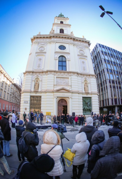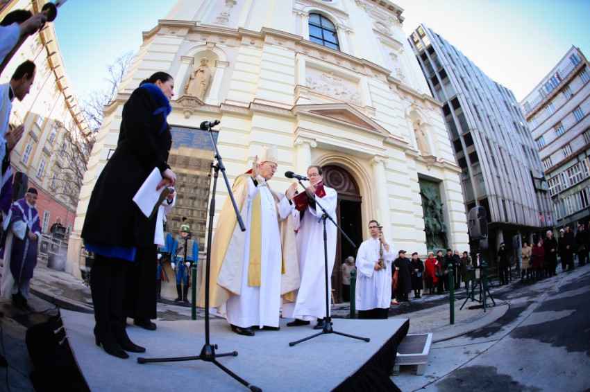 A homlokzat átadása után a Szervita kórus és a Händel Consort kamarazenekar közreműködésével adventi koncert hangzott el, majd Erdő Péter bíboros ünnepi szentmisét celebrált a nagy múltú, csaknem háromszáz éves barokk templomban. Koncelebrált többek között Philipp Ernst Gudenus templomigazgató és Osztie Zoltán budapest-belvárosi plébános.