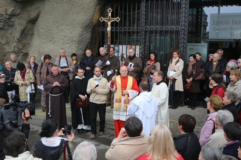 Erdő Péter bíboros április 10-én a Sziklatemplom előtt megáldotta a zarándokutat. Isten végtelen szeretetével útra hívja az embert, magához hívja, aki egész életében úton van Isten felé. A zarándokút a saját életével szembesíti az embert, melyet végig kell járnia, vállalva annak miden nehézségét, küzdelmét, hogy a végén a szerető mennyei Atyával találkozzon – mondta a bíboros.