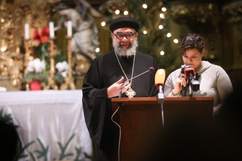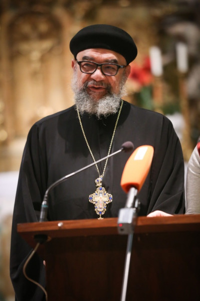A hívek könyörgései után egy kicsiny kopt kórus Halil Juszef vezetésével békehimnuszt énekelt – a keleti egyház hagyományos zenéje különleges erővel hatott: a keleti és nyugati kereszténység találkozásának szép pillanata volt ez,