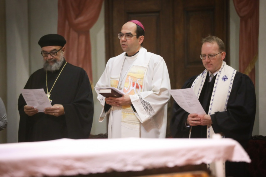 A fáklyás felvonulás 18 órakor ökumenikus imádsággal folytatódott az angolkisasszonyok Szent Mihály-templomában. Halil Juszef, a magyarországi kopt ortodox egyház főesperese mondott beszédet. János evangéliumának a tanítványokat a testvéri szeretetre buzdító szakaszából (Jn 13,34-35) kiindulva a Szentlélek első három gyümölcséről beszélt. „Az igazi szeretet, az öröm és a béke abból ered, hogy kapcsolatban vagyunk Jézussal – hangsúlyozta. – Ez a szeretet az egész életünket áthatja, ez az öröm más, mint a világ öröme, ezt a békét csak Jézustól kaphatjuk meg.”