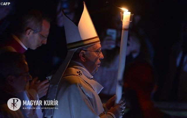 Minderre az asszonyok, Jézus tanítványai tanítanak meg minket. Ők virrasztanak azon az éjszakán, Jézus anyjával együtt. Ő pedig, a Szűzanya segítette őket, hogy el ne veszítsék hitüket s reményüket. Így nem maradtak félelmük s fájdalmuk fogságában, hanem kora hajnalban elindultak, kezükben kenettel, szeretettel felkent szívvel. Elindultak. Rátaláltak a nyitott sírra. Beléptek. Tehát virrasztottak, majd elindultak, és beléptek a misztériumba. Tanuljunk meg tőlük virrasztani Istennel együtt, Máriával, anyánkkal együtt, hogy be tudjunk lépni a misztériumba, amely átvezet minket a halálból az életre.