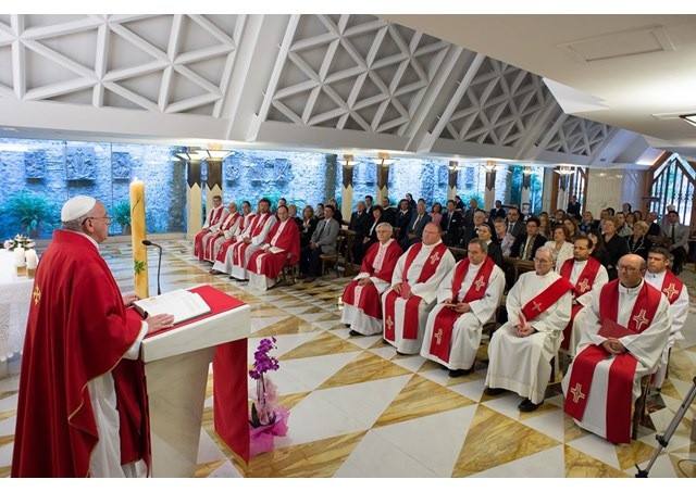 Különbözőek vagyunk, nem vagyunk egyformák, hála Istennek – hangsúlyozta a pápa –, ha másképp lenne, az valami pokol lenne! Mindannyian meghívást kaptunk a Szentlélekben való tanulékonyságra. Éppen ez a tanulékonyság az az erény, mely megment bennünket a merevségtől és attól, hogy alternativisták legyünk és attól is, hogy előnyt kovácsoljunk magunknak az Egyházban. Mert éppen ez a tanulékonyság alakítja át az Egyházat albérletből saját otthonná.