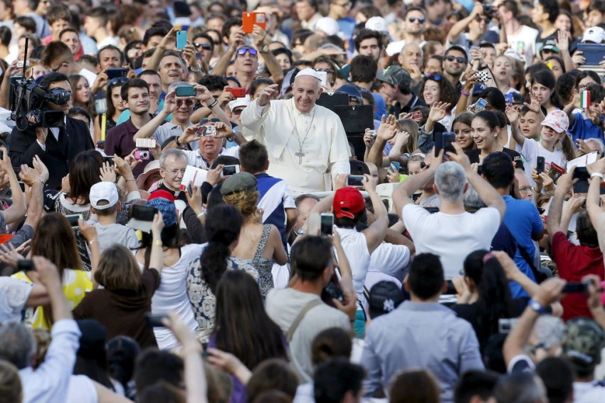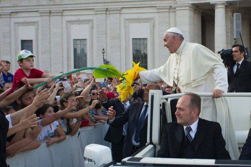 Az őszi családszinódus távlatában szemlélve a szülői hivatást, a pápa annak misztériumáról beszélt. Minden szülői hivatás, az apaság és az anyaság is az Istentől ered. Ő hív bennünket a kölcsönös és feltétlen szeretetre és ennek gyümölcseként a gyermekvállalásra. Ez a nagyszerű szülői hivatás adja meg a lehetőségét annak, hogy az ember teljesen megvalósítsa önmagát, mert hasonlóvá válik az Istenhez. Apává és anyává lenni tesz bennünket sokkal inkább hasonlóvá az Istenhez. Ez a szülői mivolt egyfajta tanúságtétel is az összes többi keresztény számára, a papok és a szerzetesek számára is, hiszen ők a lelki apaságra és lelki anyaságra kapnak tőletek impulzust. A szeretet szépségét kell megmutatnotok, nem a múlékony lelkesedést, hanem hogy hisztek benne, hogy minden veszekedés után békére találtok. Tudjátok, milyen szép, amikor a gyerekek előtt megcsókoljátok egymást!