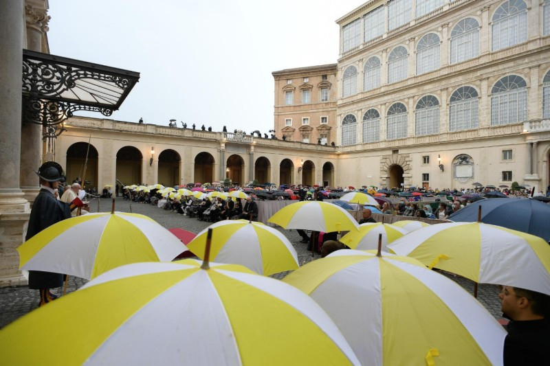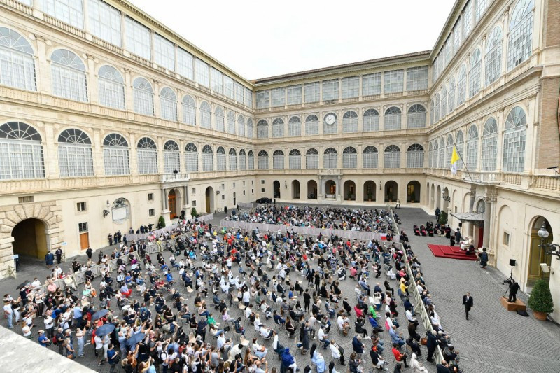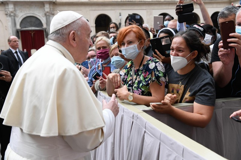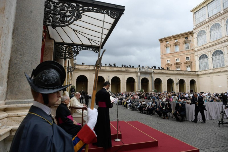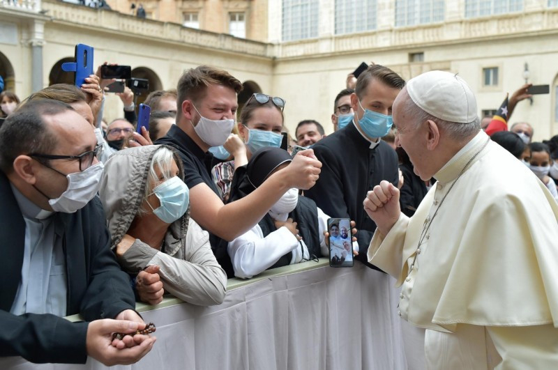 Mindenkinek hozzá kell járulnia, mindenkinek! Az ilyen részvétel segít megelőzni és kijavítani a globalizáció és az állami cselekvés bizonyos negatív aspektusait, ahogyan ez a világjárványban sújtott emberek gondozása esetében is történik. Ösztönözni kell ezeket az „alulról induló” hozzájárulásokat. Milyen jó látni az önkéntesek munkáját a válság során! Az önkéntesek minden társadalmi rétegből jönnek, vannak önkéntesek a leggazdagabb családokból, és vannak a legszegényebb családokból. De mindenki, mindenki együtt, hogy kilábaljunk a válságból. Ez a szolidaritás, ez a szubszidiaritás elvének megvalósulása.