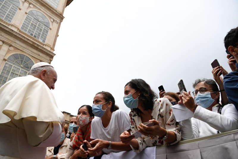 A kijárási korlátozás során ösztönösen született meg a taps gesztusa: megtapsoltuk az orvosokat, az ápolókat és ápolónőket a bátorítás és a remény jeleként. Sokan kockáztatták életüket, és sokan adták életüket. Terjesszük ki ezt a tapsot a társadalmi test minden tagja felé, mindenki felé, minden egyes ember drága hozzájárulásáért, bármennyire kicsi legyen is az. „De mit tehet az az ott lévő ember?” – „Hallgasd meg, adj neki teret dolgozni, beszélj vele!” Tapsoljuk meg a „leselejtezetteket”, azokat, akiket ez a kultúra „selejtnek” minősít, ez a kiselejtező kultúra, vagyis tapsoljuk meg az időseket, a gyermekeket, a fogyatékossággal élőket, a dolgozókat, mindazokat, akik szolgálatba állnak. Mindenki együtt dolgozik, hogy kijussunk a válságból. De ne álljunk meg csak a tapsnál!