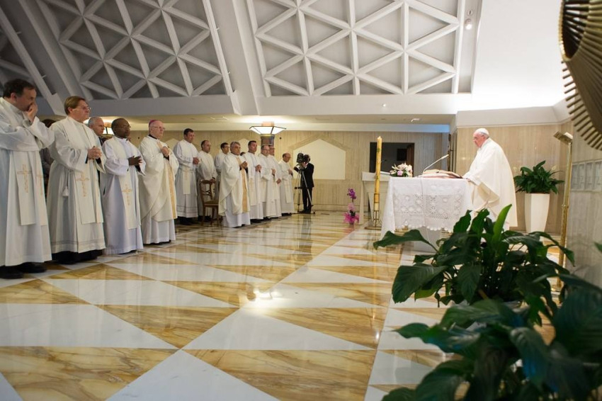 Homíliája végén a Szentatya így fohászkodott: „Uram, add meg minden papnak és püspöknek a kegyelmet, hogy mindig rátaláljanak és emlékezzenek az első szerelemre, hogy mindig pásztorok lehessenek és ne szégyelljék alázatosan egy ágyban végezni életüket, akár értelmüket vesztve. Az Úr adja meg mindig a kegyelmet, hogy Jézust kövessük, az ő nyomdokain járjunk!”