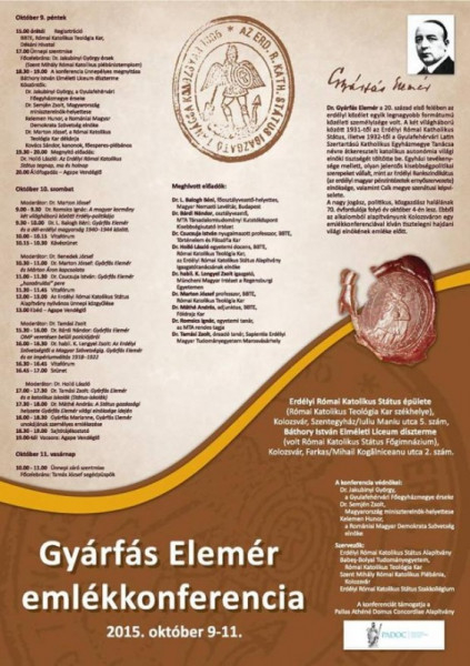 Gyárfás Elemér a huszadik század első felében az erdélyi közélet egyik legnagyobb formátumú közéleti személyisége volt. A két világháború között 1931-től az Erdélyi Római Katholikus Státus, illetve 1932-től a Gyulafehérvári Latin Szertartású Katholikus Egyházmegye Tanácsa névre átkeresztelt katolikus autonómia világi elnöki tisztségét töltötte be. Egyházi tevékenysége mellett olyan jelentős kisebbségpolitikai szerepeket vállalt, mint az Erdélyi Bankszindikátus (az erdélyi magyar pénzintézetek ernyőszervezete) elnöksége, valamint Csík megye szenátusi képviselete. A nagy jogász, politikus, közgazdász halálának 70. évfordulója alkalmából rendezett emlékkonferenciát az Erdélyi Római Katolikus Státus Alapítvány, a Babeş-Bolyai Tudományegyetem Római Katolikus Teológia Kara, a kolozsvári Szent Mihály Római Katolikus-plébánia, valamint az Erdélyi Római Katolikus Státus Szakkollégiuma.
