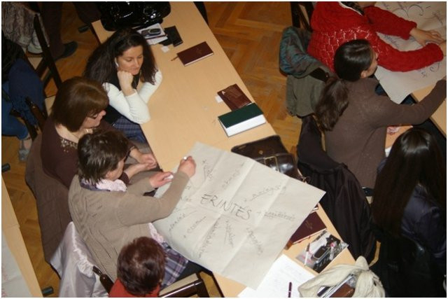 Első előadóként Torkos Eleonóra tanárnő (Brenner iskola) a bibliai történet bemutatását, megértését segítő RJR-módszert ismertette. Jairus leányának feltámasztásával és Zakeus történetével kapcsolatban a ráhangolás, jelentésteremtés és reflektálás folyamatát mutatta be alsó tagozatos gyermekek számára, sok gyakorlati példával, figyelemre méltó pontossággal és hozzáértéssel.