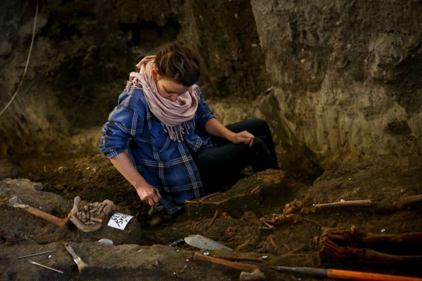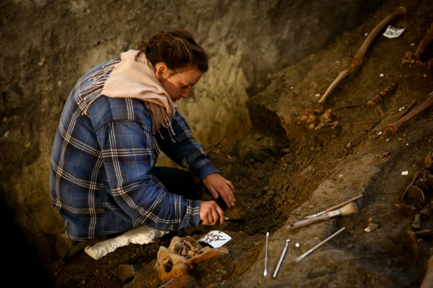 A padlózat alatt talált csontmaradványok feltehetően civilek, részben gyermekek csontjai. A második székesegyházban, az oldalhajóban található oltároknál adományok fejében egy-egy családi sírhely lehetett. Ennek egy érdekes példájára bukkantak, mondta el a főépítész: ez ugyan szedett-vedettnek tűnik feltárt állapotában, de belülről kivakolt volt, s boltozati töredékeket is befalaztak ebbe a kriptába. Ezt később osszáriumnak használták. Eddig csaknem kétszázötven csontlelet került elő innen, sok a töredék az egymásra temetkezés miatt.