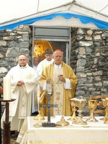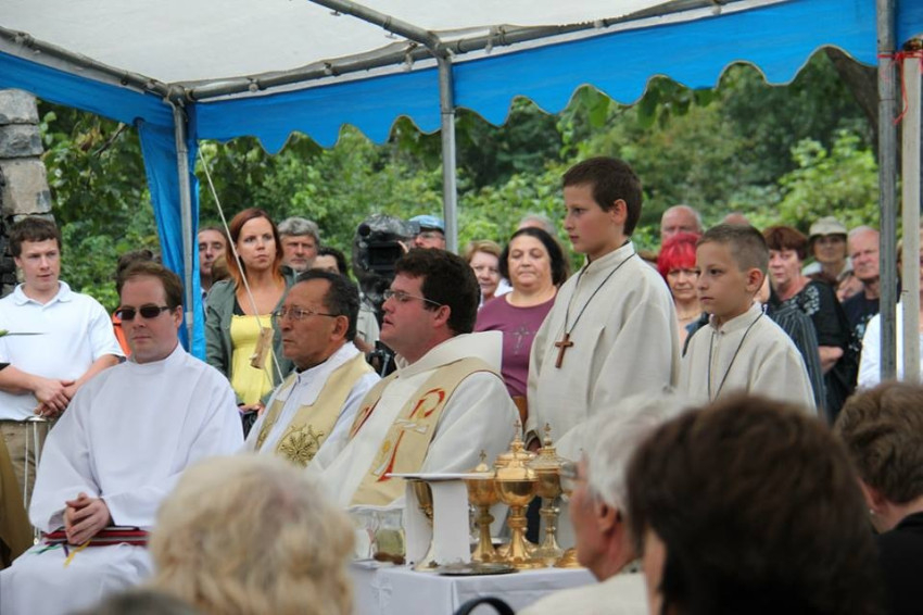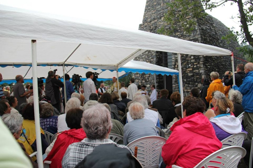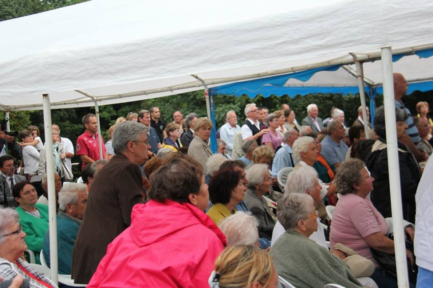 A 6×12 méteres kis kápolna előtti területen nagyon sokan gyűltek össze az ünnepre a borongós időjárás ellenére, és csodálatos módon az eső is elállt a szentmise idejére.