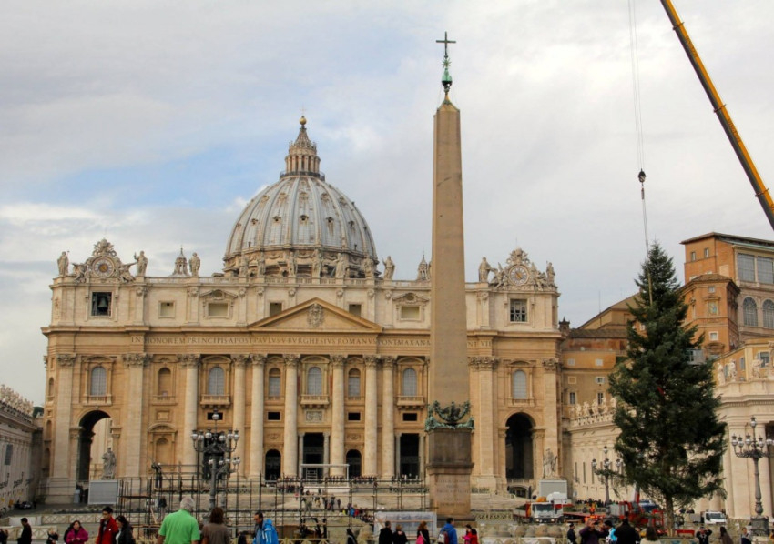 A dél-olaszországi Calabriából származő fenyő díszítése a napokban folytatódik majd, és végül az égőket is elhelyezik az óriási karácsonyfán. A Catanzaro önkormányzata által ajándékozott jegenyefenyő 25,5 méter magas, 55 cm széles törzsű és 80 mázsa súlyú. A Passo dell’Abate helységből való fát úgy vágták ki, hogy ne okozzon kárt az erdőben, ahol növekedett. A műveletet a Zöld Calabria elnevezésű regionális ügynökség csapata végezte. A fenyőt helikopterrel szállították le a hegyről, majd teherautón érkezett Rómába.