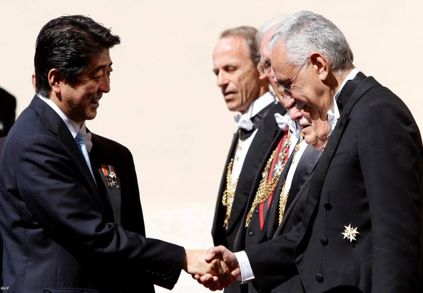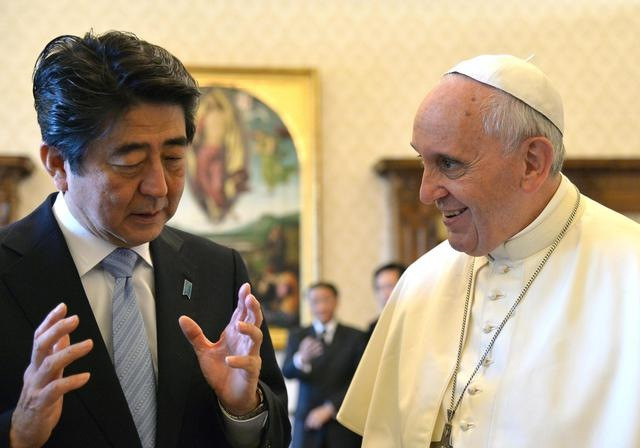 A japán miniszterelnök ezt követően találkozott Pietro Parolin bíboros államtitkárral és Dominique Mamberti érsekkel, a Vatikán államközi kapcsolatainak titkárával.
