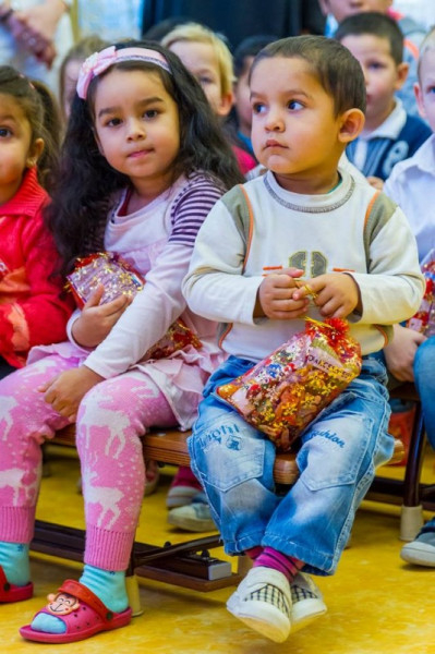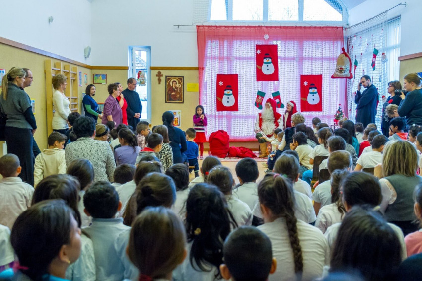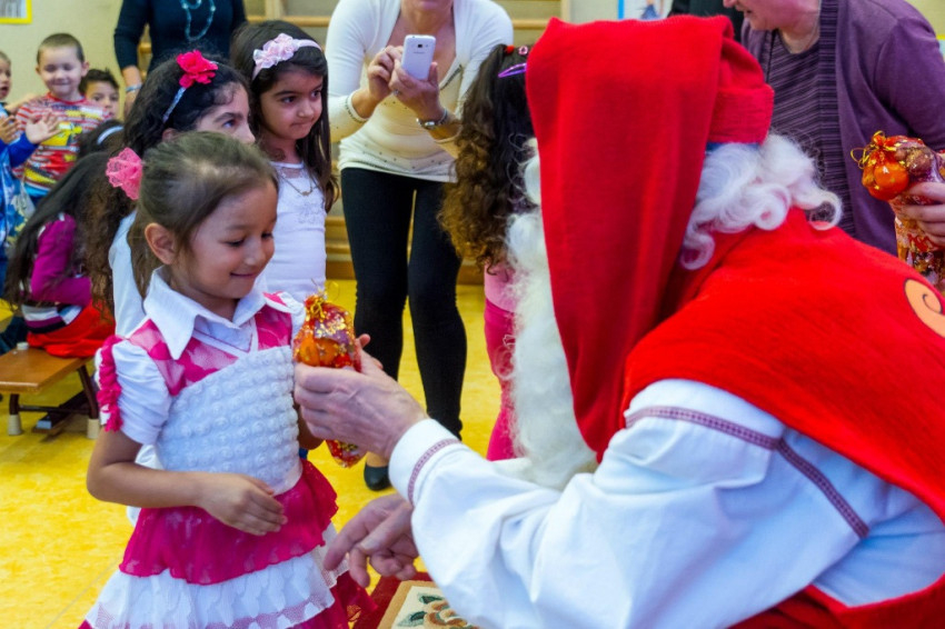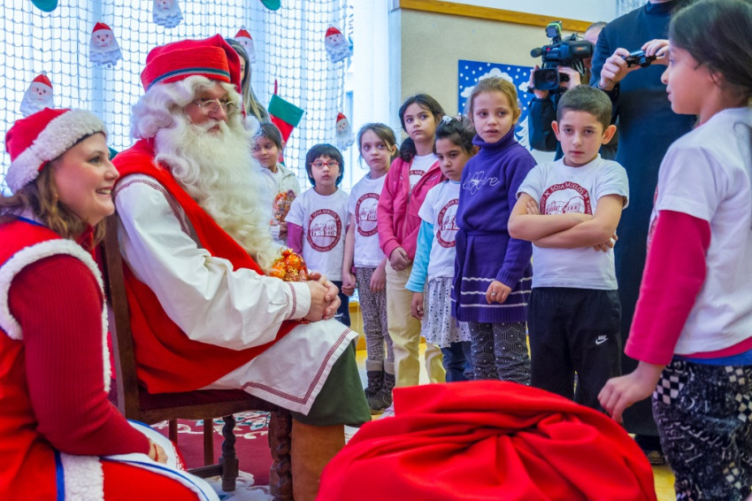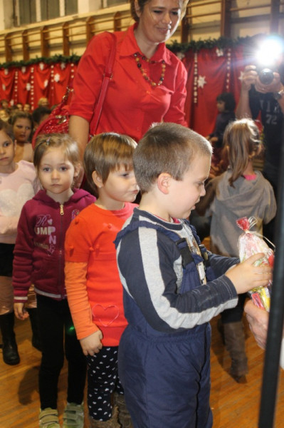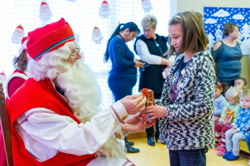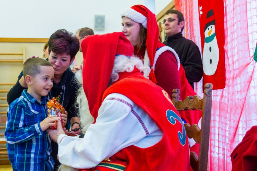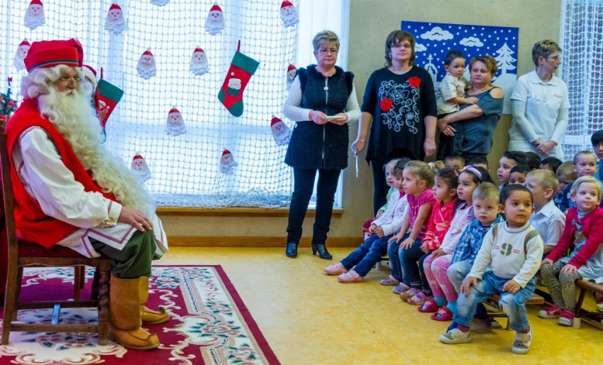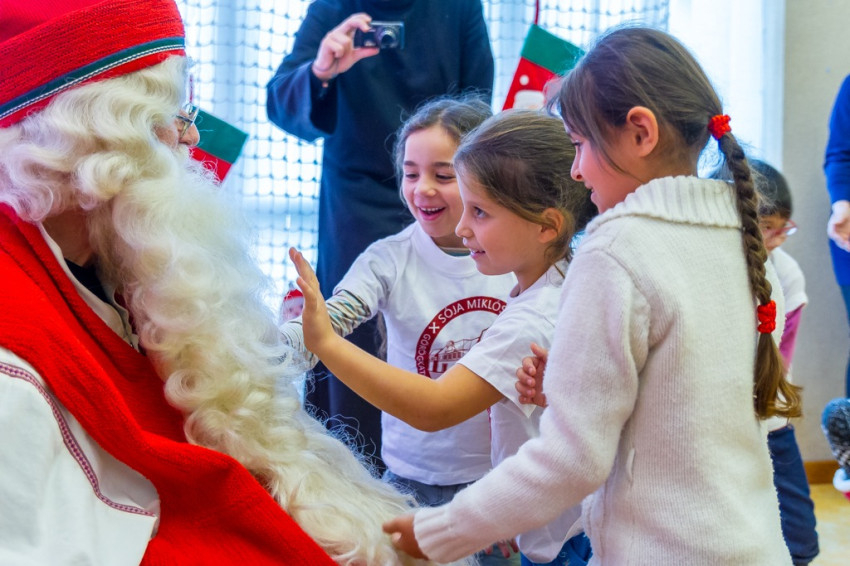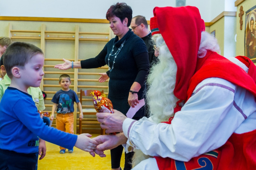 A teli zsákkal érkező Mikulás tolmácsolta a kicsiknek a lappföldi gyerekek üdvözletét, majd a karácsonyra való készülődésről és a hagyományok ápolásának fontosságáról mesélt a nekik. Szavai szerint a karácsony összeköti az összes gyereket és felnőttet a földön, így lehet közösen egy jobb világot építeni.