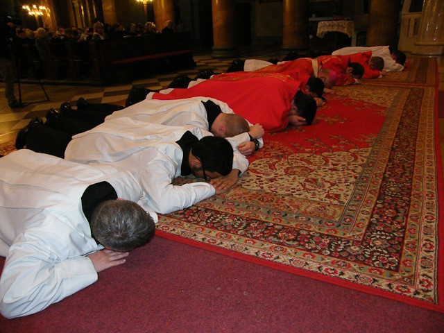 Ternyák Csaba érsek az asszisztenciával teljes csendben vonult ki, majd leborulásukkal fejezték ki a megrendültséget. A szertartás első részében igeliturgiára került sor, amelynek hangsúlyos része volt a János evangélium passiója, amelyet a kispapok szkólája adott elő Urbán Péter karnagy vezetésével.