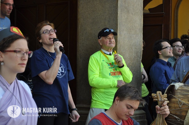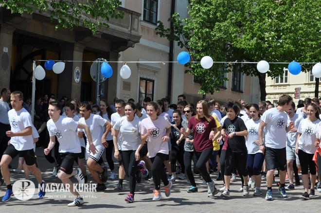 Április 22-én, szerdán különleges futóversenyt rendezett a gimnázium a dallasi szerzetes tiszteletére. A néptáncos bemelegítés után csaknem három kilométert futottak a gimnazisták és általános iskolások a belvárosban. Marton Bernát atya sérülése miatt nem futott, az indítást viszont vállalta. Harminckét maraton és hét ultramaraton után elmondta: szeretné, ha minél többen megtapasztalnák a futás örömét. Csak egy futócipő kell: bárki bármikor elkezdheti.