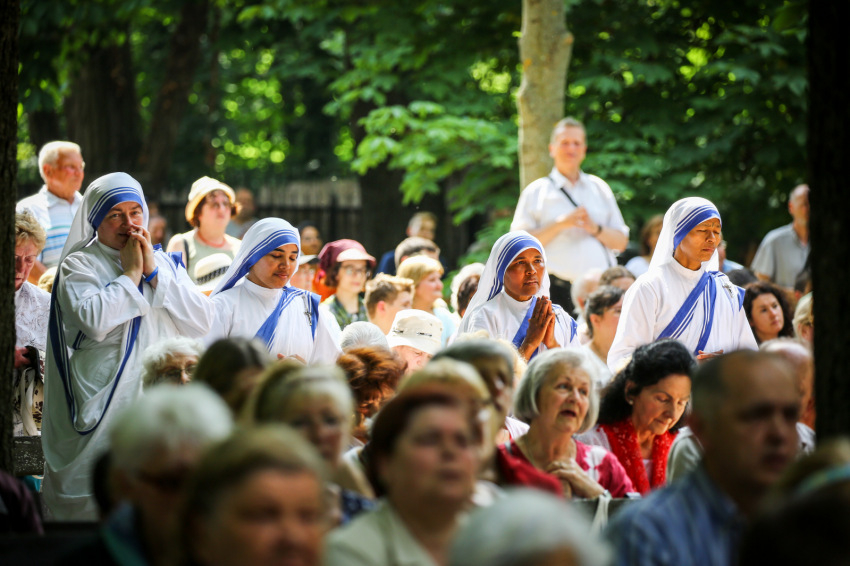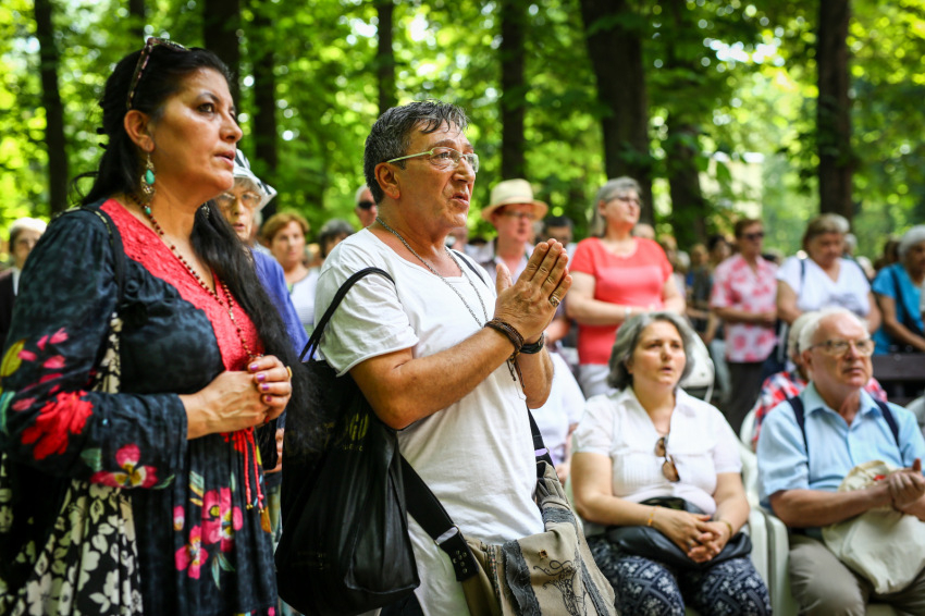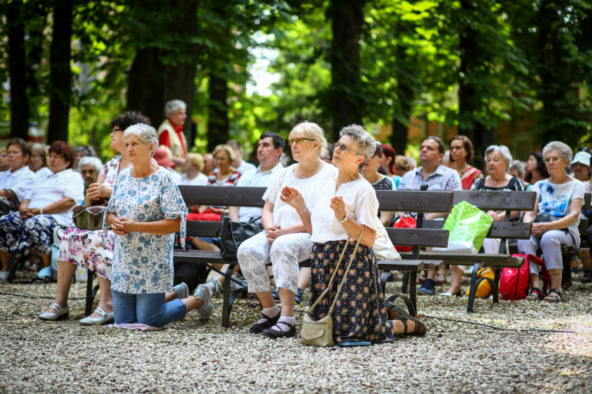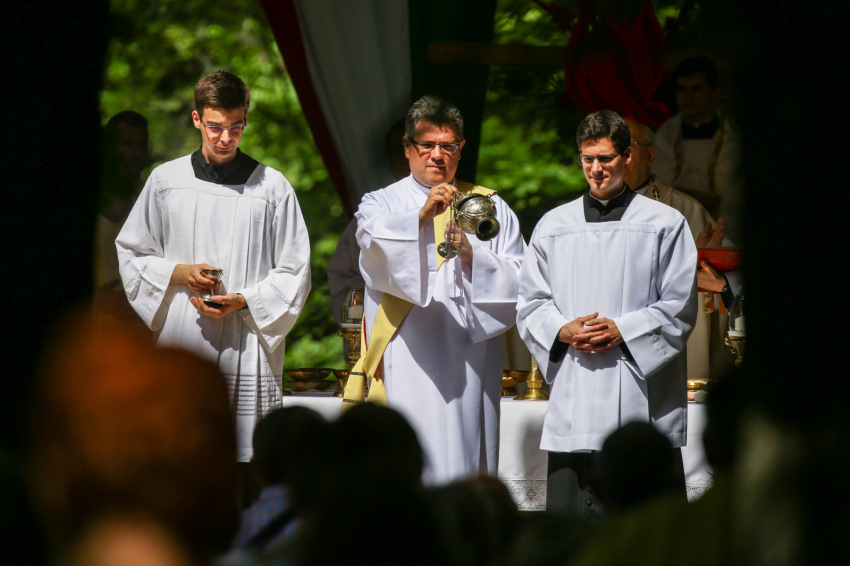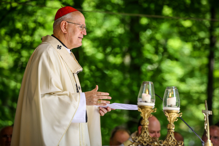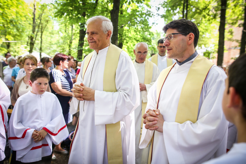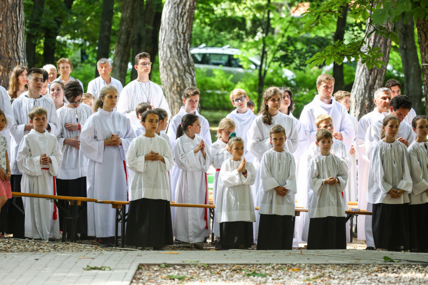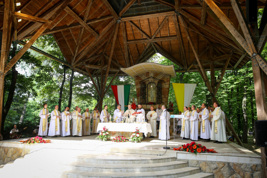Délután a máriaremetei kegytemplom szabadtéri oltáránál Erdő Péter mutatott be szentmisét az egyházmegye papságával.