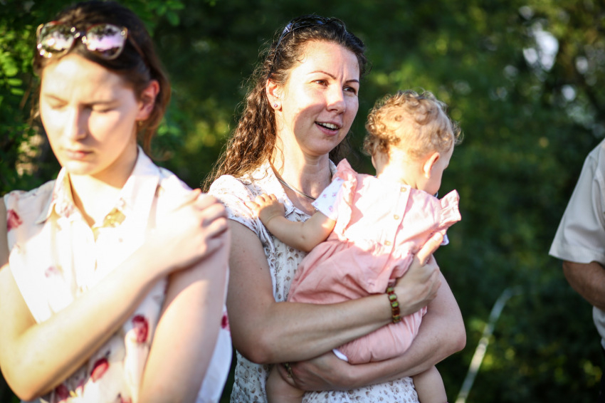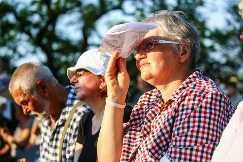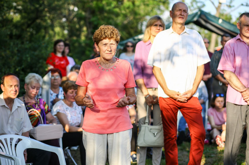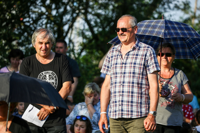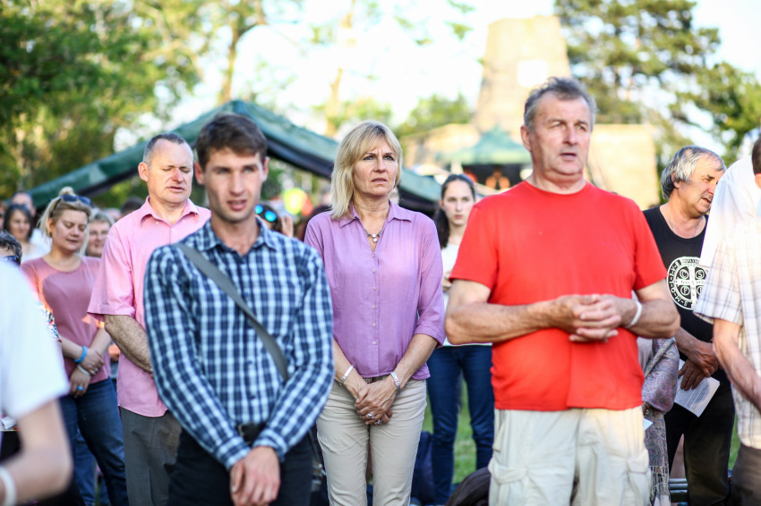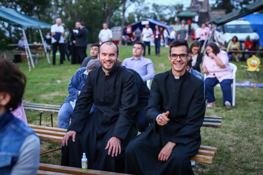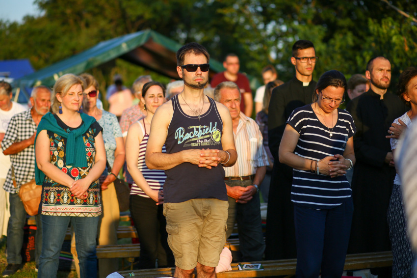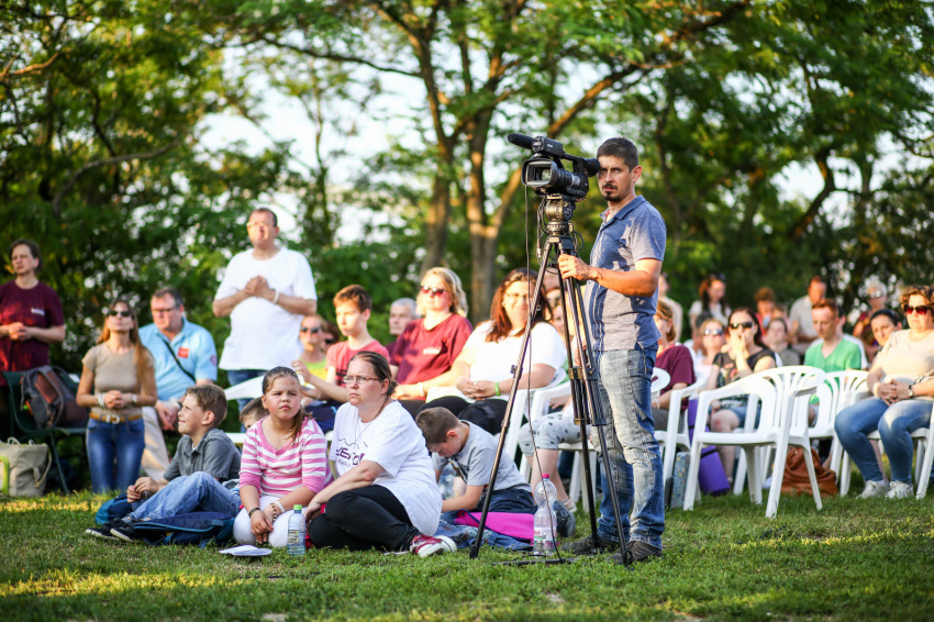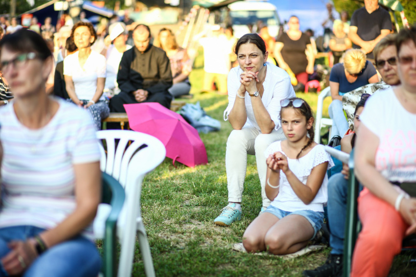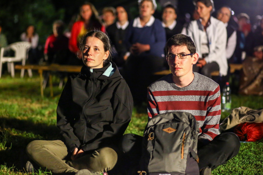 Miközben a színpadon tanúságtételek kezdődnek, mi a kollégámmal a szervezői sátornál Kiss Nándorral, a közösség egyik tagjával beszélgetünk a hosszú útról, amely végül ide, a hegyre vezetett. A szentségimádások történetéről, amelyekbe az indiai Joseph Vadakkel atya buzdítására kezdtek bele a környék településein, Magyarország és a magyar fiatalok megtéréséért. Közösségük legfőbb ismertetőjele a testvéri szeretet, ahogyan az őskeresztény időkben lehetett; Nándor nagy családhoz hasonlónak látja magukat.