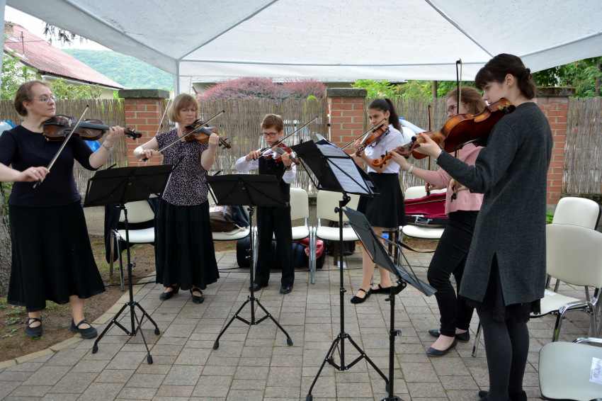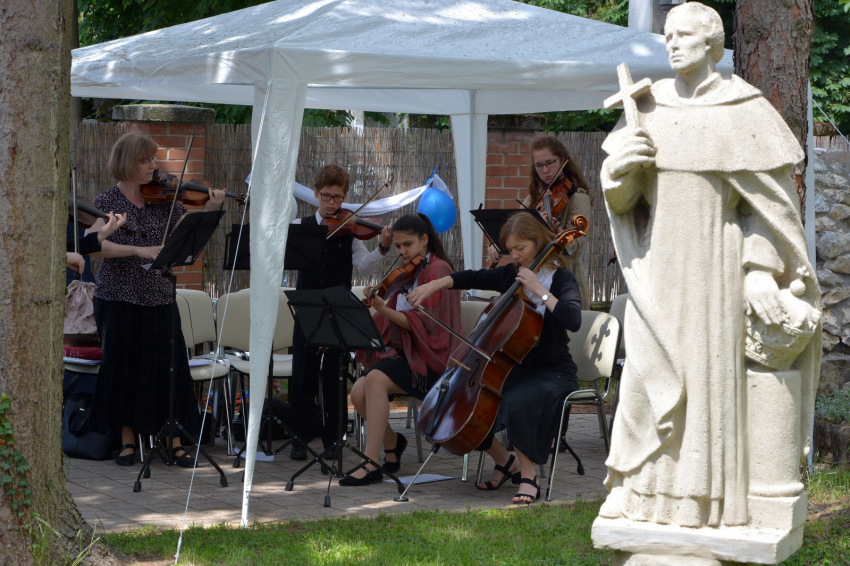 A kert ünnepélyes átadása után a ház munkatársainak és lakóinak ünnepi műsora következett, majd a Patrona Hungariae Katolikus Iskolaközpont Alapfokú Művészeti Iskolájának vonószenekara adott koncertet.