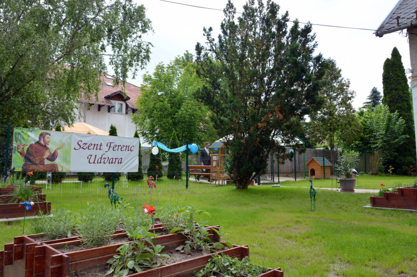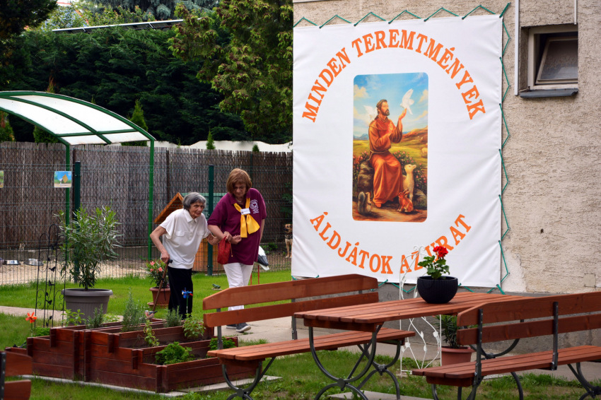 Horváth Zoltán terézvárosi plébános szentbeszédében arról szólt, hogy Isten helyét nemcsak a templomban találhatjuk meg, hanem a természetben is. Így volt ez Jézussal is, aki a Tábor-hegyen imádkozott, vagy akár az olajfák tövében. A természetben az ember közelebb érezheti magát Istenhez. A természet is az Úr szentélye. Egy idősek által lakott otthon kertje, mely a természetet hozza közelebb, az imádságra, az elmélyülésre, a meditációra, a gyógyulásra teremt lehetőséget. A Szent Ferenc Udvara elnevezésű kert lehetőséget teremt arra, hogy az itt élők és dolgozók csendben, elvonultan, a természetben lehessenek együtt Istennel.
