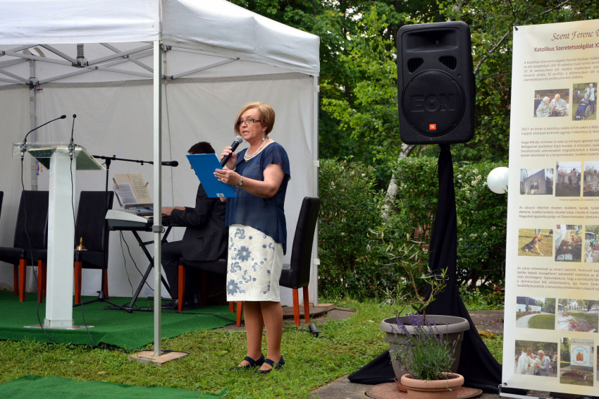 Tudjuk, hogy az idős ember akkor a legboldogabb, ha saját környezetében maradhat, hiszen amint telnek az évek, a változásokat mindenki egyre nehezebben viseli – folytatta a főigazgató. – Van azonban olyan állapot, amikor segítség nélkül már nem lehet otthon tartani az idős, beteg embert. Hazánkban közel 200 ezer embert érint a demencia, a világban pedig 50 milliót. Elsősorban a gondozó családokra ró mindez súlyos lelki, fizikai és anyagi terhet. Erre mutat a szeretetszolgálat példát, amikor nappali gondoskodást nyújt, melynek része lesz a Szent Ferenc Udvara is. Úgy lehet segíteni a családoknak, hogy az időseket nem ragadják ki megszokott környezetükből. Az állatok által asszisztált terápiáknak komoly szakirodalma van. Segítenek, mert a természet körforgását mutatják akkor is, amikor már összezavarodik az idő.