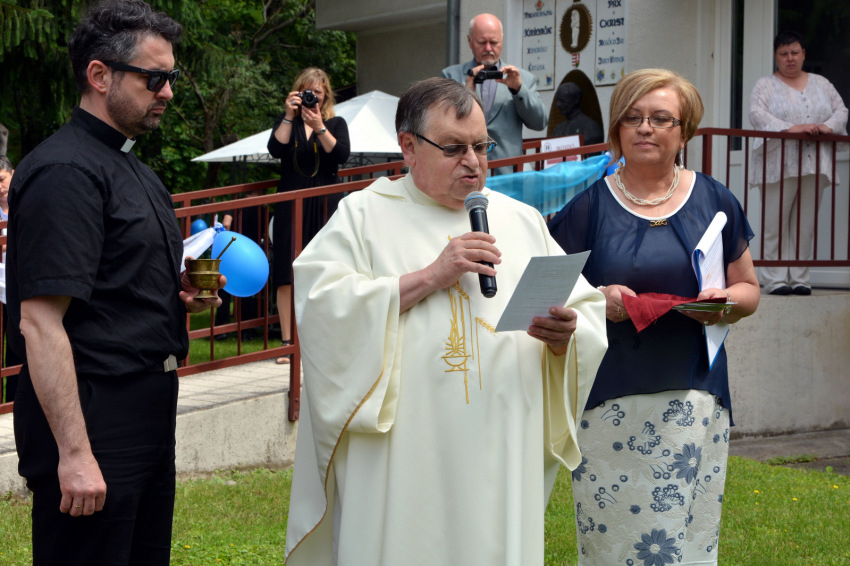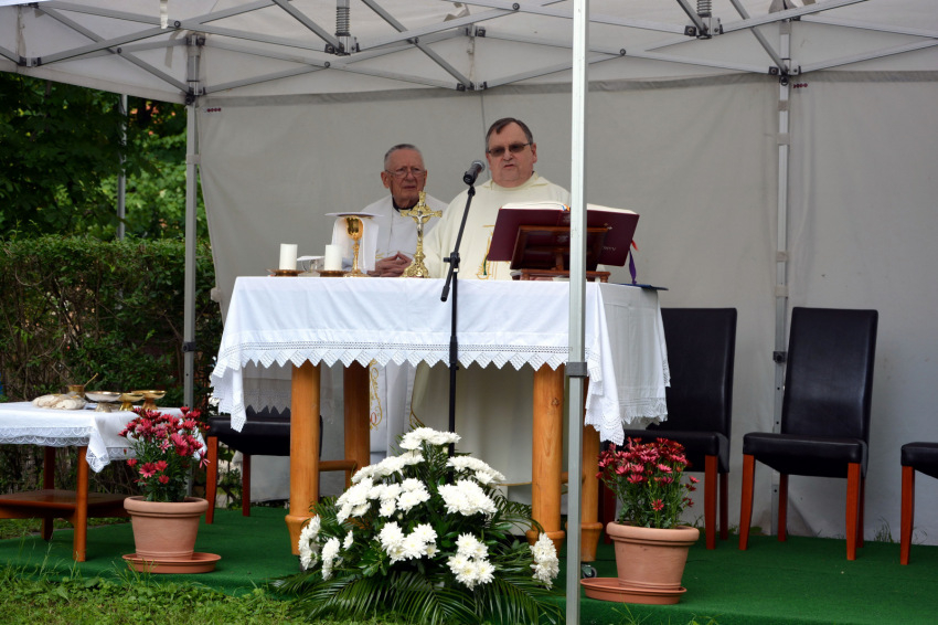 Miután Balog Józsefné intézményvezető köszöntötte a megjelenteket, Esterházy László máriaremetei plébános főcelebrálásával megkezdődött a szentmise. Esterházy atya külön köszöntötte a vele koncelebráló Herpy Györgyöt, akit 65 esztendővel ezelőtt szenteltek pappá. A vasmisés atya jelenleg a ház lakója, az ott élők lelki támasza, aki az eucharisztikus Jézust hozza közéjük.