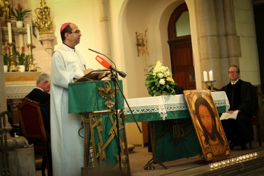 Székely János püspök beszédében hangsúlyozta: azzal a hittel imádkozunk, hogy életünk a teremtő Isten kezében van. Figyelmeztetett arra, hogy amikor a történelemből eltűnik Isten, eltűnik az ember is, hiszen emberi méltóságunk alapja, hogy a teremtő Isten képmásai vagyunk.