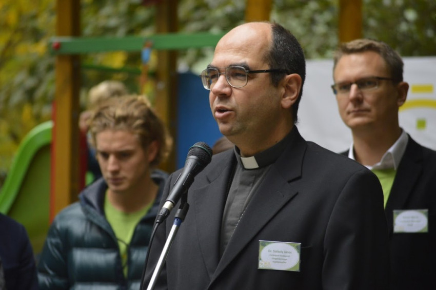 Egy budapesti óriás lakótelep közepén vagyunk egy játszótéren, közintézményekkel körülvéve – dicsérte a helyszínválasztást Bogárdi Szabó István püspök, a Magyarországi Református Egyház Zsinatának lelkészi elnöke. – Kis sziget ez a játszótér a tízemeletesek között, a Szentendrei út forgalmától néhány méterre.