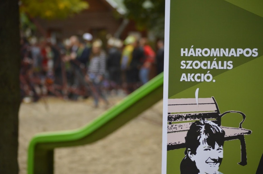 A szeretetszolgálat Kerék utcai játszóterén önkéntesek várták a történelmi egyházak és a kormányzat képviselőit, hogy gyerekeknek szóló programokba ágyazva foglalják össze a a 72 óra idei tevékenységét.