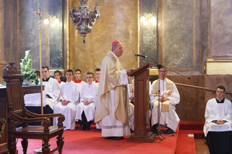 A liturgián a székesegyház Palestrina kórusa teljesített zenei szolgálatot. Az evangélium után a jelöltek kiválasztása, majd a főpásztor szentbeszéde következett. Pápai Lajos elmélkedését ezzel a kérdéssel kezdte: Papszentelés 2014-ben? Majd megállapította: még a hívők között is vannak, akik szinte sajnálkoznak, ha egy fiatal pap lesz, hiszen „elpazarolja életét”. E szemléletet határozottan el kell utasítanunk, hangsúlyozta a főpásztor, s rámutatott a papi hivatás lényegére, amely nem más, mint feltétel nélküli, teljes önátadás Krisztusnak.