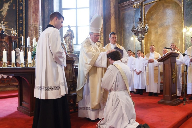 A megyéspüspök hangsúlyozta, hogy Krisztus az egyetlen közvetítő, s a szentelendők a tőle eredő apostoli papságnak lesznek részesei. Ezért először is jelenvalóvá kell tenniük Jézust életünkben, másodszor minden helyzetben Krisztus követségében kell járniuk, harmadszor pedig az emberek szolgájává kell lenniük – mindazzal együtt, hogy a pap tudja, munkájának hatékonysága elsősorban nem saját erőfeszítésétől függ.