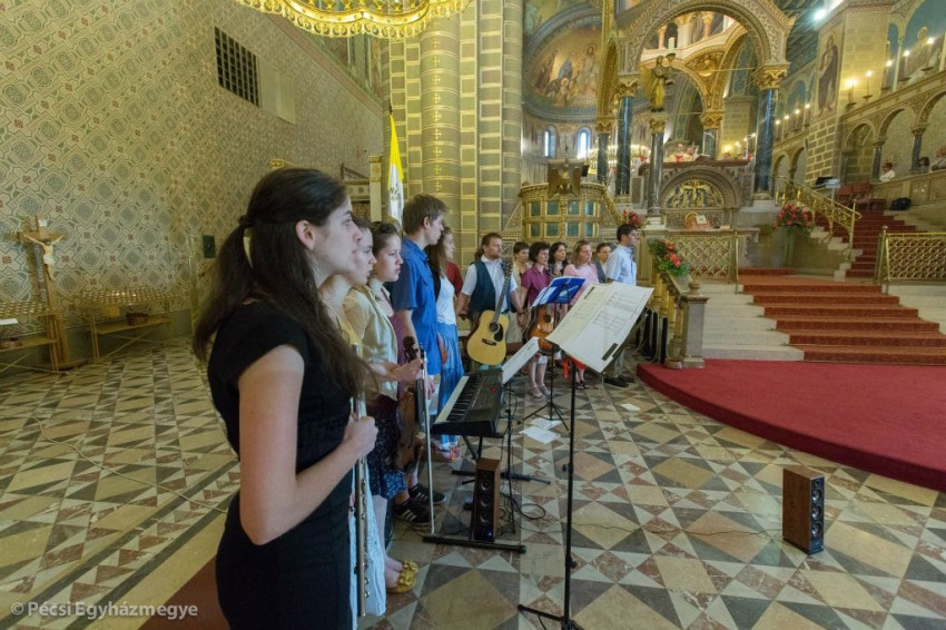 Az imádságra vágyók egész nap betérhettek a székesegyház Corpus Christi-kápolnájába a havihegyi hívek által megtartott szentségimádásra. A szentélyben délután a kővágószőlősi plébánia egyházzenei csoportjának dicsérete szólt, míg a csendes elmélkedést a Gesztenyés Közösség által szervezett szemlélődő ima segítette „Tanulj meg nyugodt lenni!” mottóval.