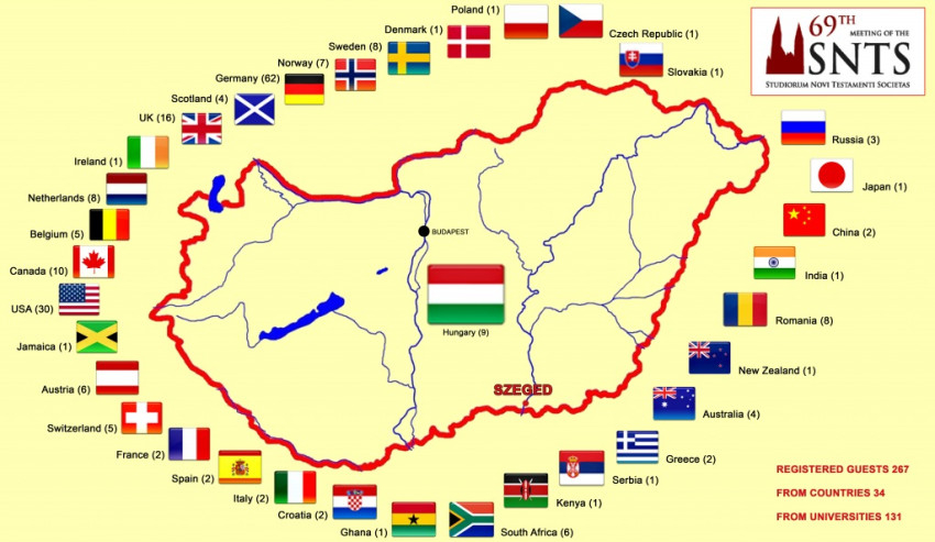 A biblikus konferencián öt kontinens 55 országából 267 bibliatudós vett részt, többek között Indiából, Kínából, Ghánából, Moszkvából, Mexikóból és Dél-Koreából. Hazánkba érkezett az SNTS jelenlegi elnöke, Christopher Tuckett az Oxfordi Egyetemről.