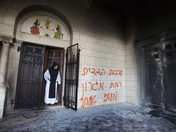 Mialatt múlt vasárnap a szentföldi katolikusok XXIII. János és II. János Pál pápa szentté avatásának felemelő pillanatait élték át, vandalizmus és szentségtörés áldozatául esett több szent hely.