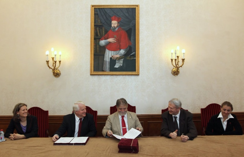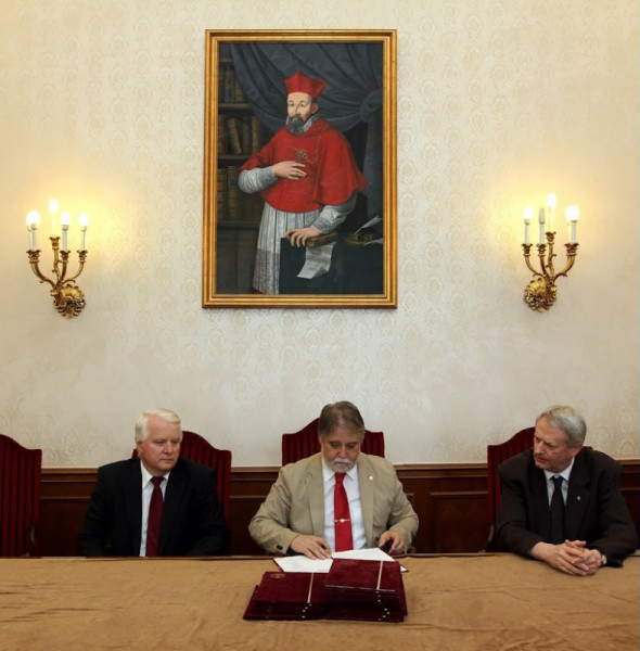 A megállapodást az ELTE Állam- és Jogtudományi Karának épületében írta alá Mezey Barna, az Eötvös Loránd Tudományegyetem rektora, Várnai Sándor Jakab, a Sapientia Szerzetesi Hittudományi Főiskola rektora és Szabó Lajos, az Evangélikus Hittudományi Egyetem rektora.