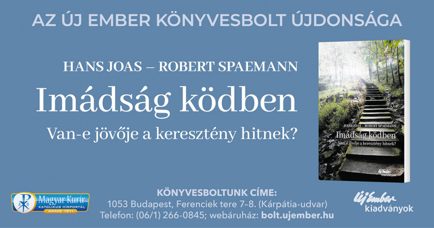 Hans Joas és Robert Spaemann Imádság ködben – Van-e jövője a keresztény hitnek? című kötete megvásárolható az Új Ember könyvesboltban (Budapest, V. kerület, Ferenciek tere 7–8.; nyitvatartás: hétfő, kedd, csütörtök, péntek 9–17 óráig; szerdán 10–18 óráig) vagy megrendelhető az Új Ember online könyváruházban.