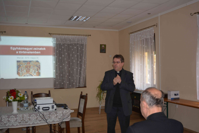 Az előadó a Veszprémi Egyházmegyében tartott zsinatokról is szólt, végül rátért az 1993-ban, Szent II. János Pál pápa által létrehozott Kaposvári Egyházmegye eddigi zsinati történetére. Az előadás végén hozzászólások és kérdések hangzottak el a témához kapcsolódóan és a hitoktatást illetően.