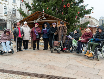 A Pécsi Egyházmegye fenntartásában működő Szent Lőrinc Gondozóotthon lakóinak kórusa énekelt Pécsen, a Széchenyi téren felállított karácsonyfa és betlehem mellett december 3-án.