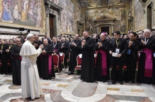 június 7. | 12:00Megtérés, misszió és irgalmasság – Leó pápa három nagykáptalan tagjait fogadtaJúnius 6-án délelőtt XIV. Leó pápa közös kihallgatáson fogadta a ferences Reguláris Harmadik Rend (Tertius Ordo Regularis Sancti Francisci, TOR), az Afrikai Missziós Társulat (Societas Missionum ad Afros, SMA) és a Vigasztaló Szolgái (Servi Sancti Paracliti) nagykáptalanjainak résztvevőit.... »