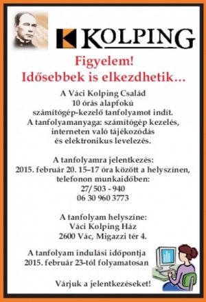 A Váci Kolping Család 10 órás alapfokú számítógép-kezelő tanfolyamot indít