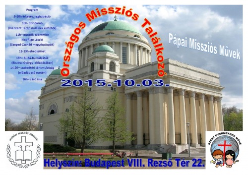 Október 3-án, szombaton tartják Budapesten, a Rezső téri Magyarok Nagyasszonya-templomban a Pápai Missziós Művek egyik ágazatának, a Szent Gyermekség Művének, azaz a Missziós Gyermekek Társaságának II. országos találkozóját (1089 Budapest, Rezső tér).